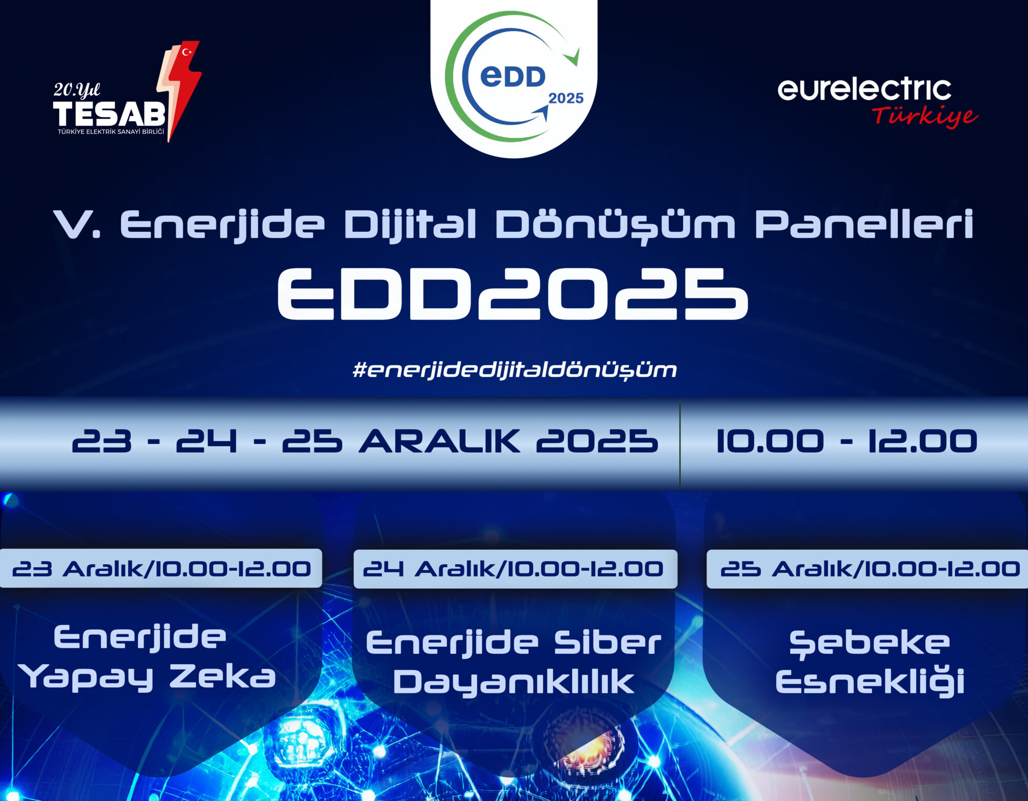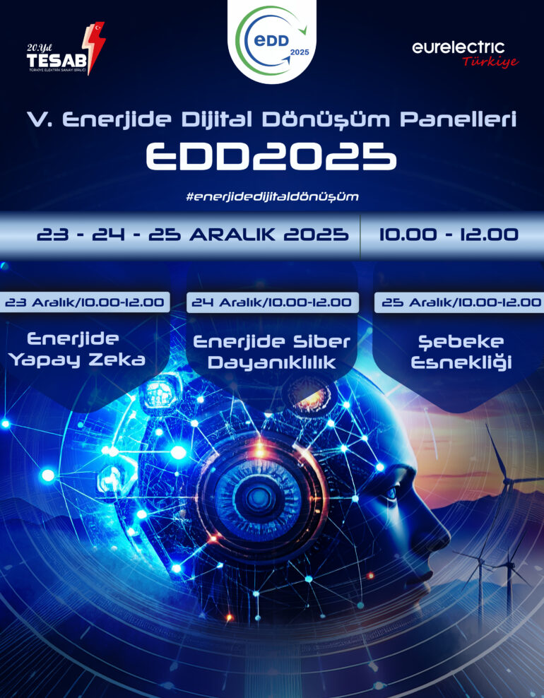 ana sayfa V. ENERJİDE DİJİTAL DÖNÜŞÜM PANELLERİ BAŞLIYOR.. Kasım 28, 2025 admin No Comments Enerjide Dijital Dönüşüm Panelleri başlıyor. V. Enerjide Dijital Dönüşüm Panelleri (EDD2025) 23-24-25 Aralık’ta düzenlenecek.Çevrimiçi olarak yapılacak etkinlik 3 gün ve 2’şer saat devam edecek.#EDD2025Enerjide Yapay Zeka,Enerjide Siber Dayanıklılık,Şebeke Esnekliği konularına odaklanacak Kayıt olmak için tıklayın Related Post 24 Haz, 2025 ana sayfa, Konferanslar IV. ENERJİDE DİJİTAL DÖNÜŞÜM PANELLERİ (EDD2024) BAŞLIYOR 29 Haz, 2025 ana sayfa, Etkinlikler YEŞİL DÖNÜŞÜM SÜRECİNDE ADİL GEÇİŞ: DÜNYADA POLİTİKALAR VE TÜRKİYE İÇİN ÖNERİLER KİTABIMIZ ENERJİ SEKTÖRÜ İLE BULUŞTU 03 Kas, 2025 ana sayfa GÜÇ SİSTEMLERİ KONFERANSI IV (GSK2025)